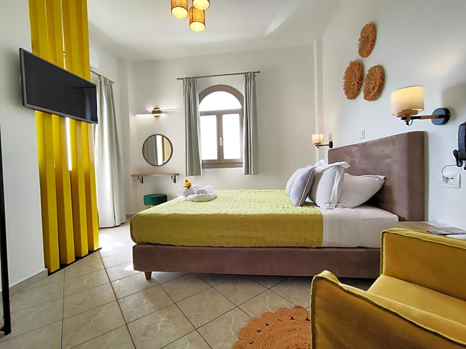Guest accommodations shimmer with views: Caldera View suites and other rooms featuring sea, panoramic, or sunrise vistas. Notable options include Suite, Caldera View; Duplex Suite, Caldera View; Room With Sea View; Room With Sunrise View; Deluxe, Sunrise View; Double Room, Panoramic View—each promising a memorable Greek-isles panorama.