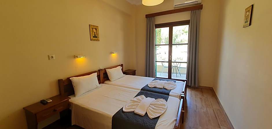 Welcome to Phivos Hotel, a charming aparthotel nestled just 0,4mi from the heart of Géfyra, Greece. Perfectly situated on Main Street, this cozy retreat offers a fantastic blend of comfort and convenience for your Greek getaway. With its vibrant garden views and ample amenities like free Wi-Fi, air conditioning, and a fully equipped kitchenette, you'll feel right at home the moment you arrive.