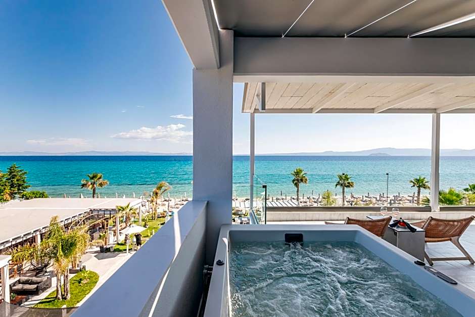 Blue Carpet Luxury Suites presents a sun-loving getaway on a private beachfront in Kassándreia, Greece. The seasonal outdoor pool with a shallow end offers a safe splash and a view of the sea, perfect for a relaxed afternoon. Spa and wellness packages invite pampering, and massage is available for an extra charge. For meals, the on-site Restaurant serves Mediterranean and International cuisines, making every bite a breezy celebration of the location.