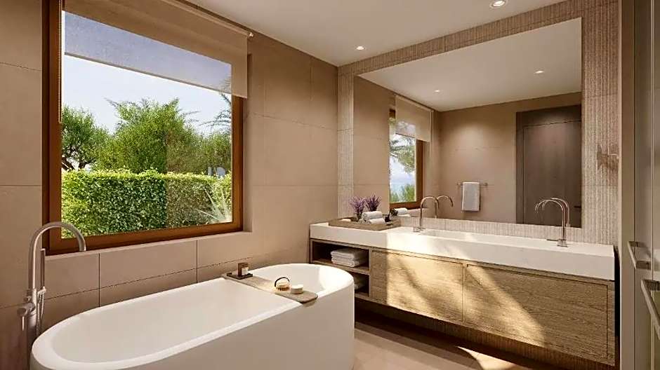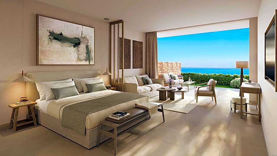 Junior Suite Private Garden Sea View is 484 square feet and includes a queen-size bed 150-154 width plus a sofa bed and is Wheelchair-accessible.