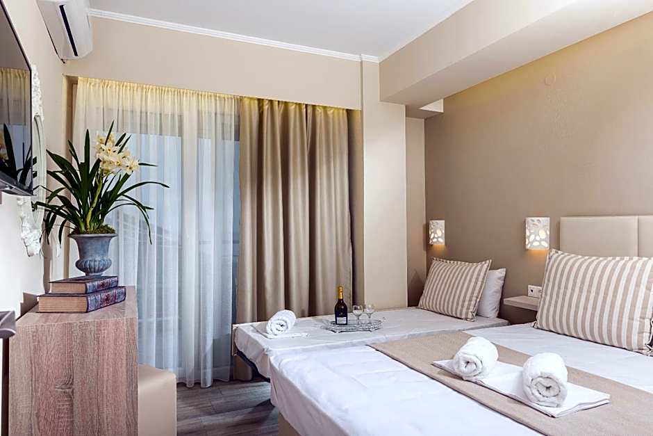 Ammos Beach Seaside Luxury Suites Hotel is a four-star beachfront escape in Kateríni, Greece. Located at Poseidonos 21, Olympic Beach Paralia Katerini, this resort sits about 4.8mi from the city center. With 284 reviews, the property blends seaside charm with practical comforts: free parking, free WiFi, air conditioning, a private entrance, and easy access to a balcony with a view.