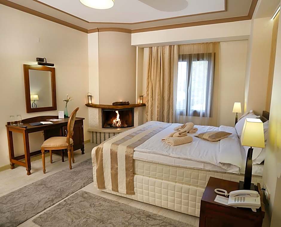 Guests at Hotel Rodovoli can indulge in a variety of leisure amenities during their stay. They can relax in the hot tub, take in the beautiful mountain, garden, river, and landmark views, or enjoy the sounds of nature in the soundproof rooms. For dining options, they can try the on-site restaurant Rodovoli, offering Greek cuisine in a variety of ambiences like family-friendly, traditional, modern, or romantic. The hotel also features a bar where guests can unwind, as well as a sun deck, garden, and terrace where they can enjoy the outdoors. With the kids' club available, both adults and children can enjoy their stay, while those in need of extra assistance will find the property wheelchair accessible.
