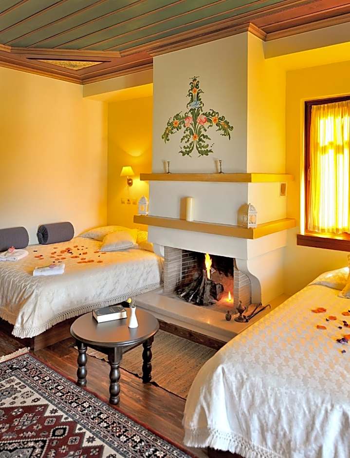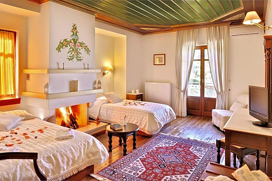 Konitsa Mountain Hotel offers a variety of room types including Superior Double Rooms with Fireplace, Junior Suites, Deluxe Rooms with Jacuzzi and Fireplace, Standard Single Rooms, Suites, and Standard Double or Twin Rooms with Balcony. Smoking is not allowed in any of the rooms. The occupancy varies from 1 adult in the Standard Single Room to 3 adults and 1 child in the Deluxe Room with Jacuzzi and Fireplace and the Standard Double or Twin Room with Balcony. The bed sizes range from Twin and Queen beds to Sofa beds.