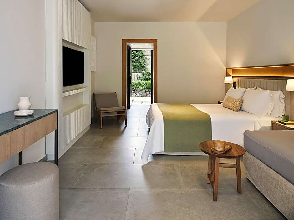 The Junior Suite is located in the gardens, with frontal sea view, overlooking the Ionian Sea and coastal mountains of the Greek mainland. It features a private pool and terrace with sun loungers. The Rejuvenate Package includes: -body wraps with chocolate and supreme hydrotherapy antistress (day1) -supreme hydrotherapy relax and massage with essential oils (day 2) -face treatment with avocado (day 3) Package is scheduled upon arrival and is valid for a minimum stay of 4 nights. Each adults is entitled to a weekly package which cannot be transferred to another person.
