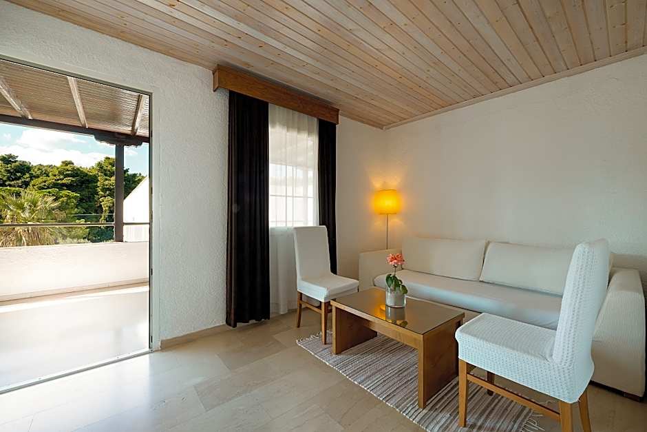 Families are especially welcomed here, with plenty of kid-friendly options including a free kids' club, a dedicated kids' pool, and adorable kids' meals. Fancy some sport? Hit up the free tennis court or water sports facilities (extra charges apply) to stay active. The hotel’s lush garden and terrace offer picturesque views, while the soundproof rooms and balcony provide a peaceful retreat after a fun-filled day exploring Kryopigí’s beautiful surroundings.