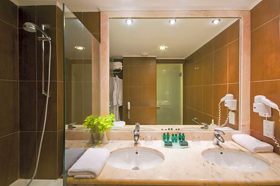 PROMO ROOM is 215 square feet and includes either a double bed 131-150 width or 2 single beds 80-130 width plus balcony, desk, satellite tv , cable tv, hairdryer, tea and coffee making facilities , ironing set, safe, bathrobes, and slippers.