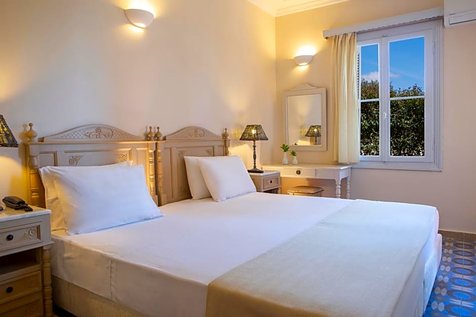 Savor delicious meals at the onsite restaurant or unwind at the bar while soaking up Greece’s sunny vibes from the spacious terrace. Take a dip in the outdoor swimming pool, lounge on the sun deck with free beach chairs and umbrellas, or stroll through the beautifully maintained garden. Complimentary Wi-Fi, air conditioning, and private parking make your stay effortless, while non-smoking rooms and thoughtful touches like free toiletries ensure your comfort.