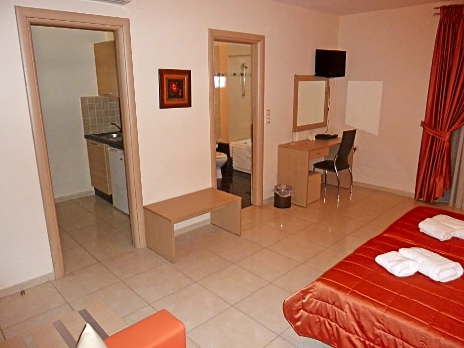 The hotel’s well-equipped rooms come with air conditioning, balconies, and your very own kitchenette, making it easy to feel right at home. With free Wi-Fi, room service, and on-site private parking, everything is designed for your convenience. Plus, the hotel’s beautiful gardens and terrace provide the perfect backdrop for moments of tranquility, while beach umbrellas and chairs mean you can spend your days soaking up the Mediterranean sun right by the shore.