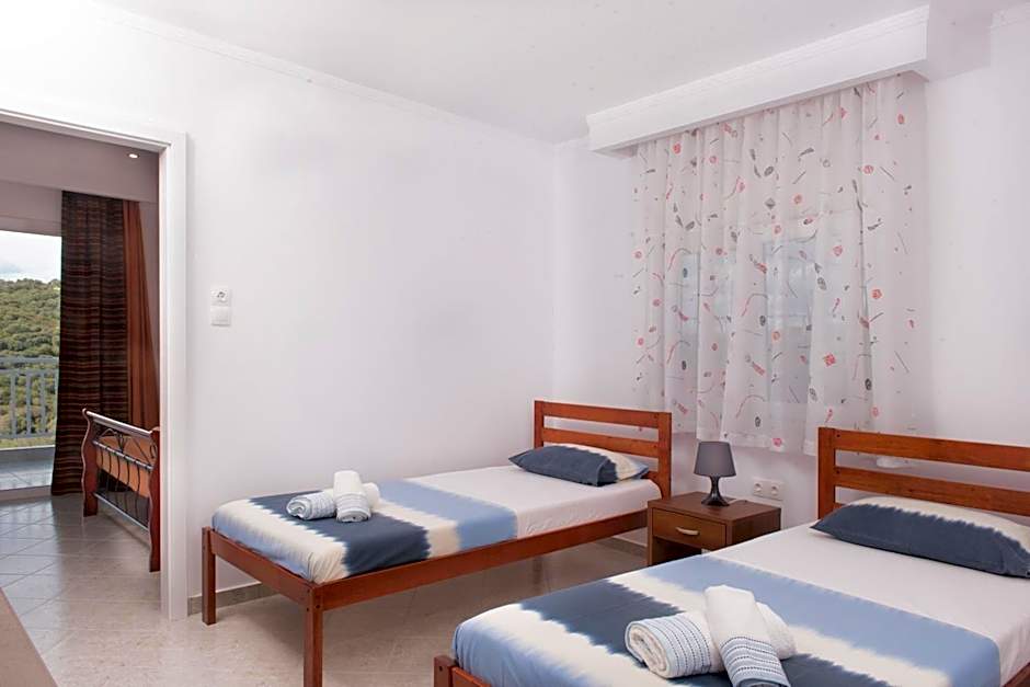 Perched on Amoliani, Limáni Ammoulianís, this 1-star apart hotel serves as a simple, sun-soaked base about 0,8mi from the town center. A diverse lineup of rooms includes Junior Suite, Sea View; Room, Balcony; Superior; Family Suite, Sea View; Deluxe, Single; Deluxe; Deluxe, Sea View; Family, Groundfloor; Economy; and a flexible Room Selected At Check In, with most options accommodating two adults and either no children or one child.