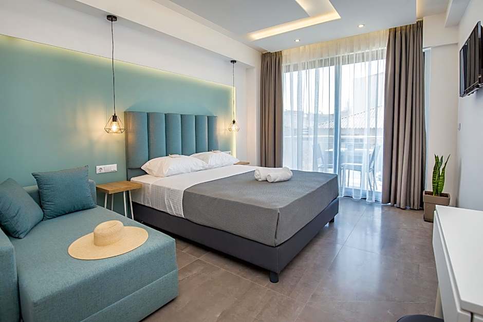 The New Azzurro Deluxe hotel offers Deluxe Triple Rooms that can accommodate 3 adults and 2 children. These rooms have a size of 258 sqft and do not allow smoking. They are equipped with 1 sofa bed and 1 queen size bed for guests' comfort.