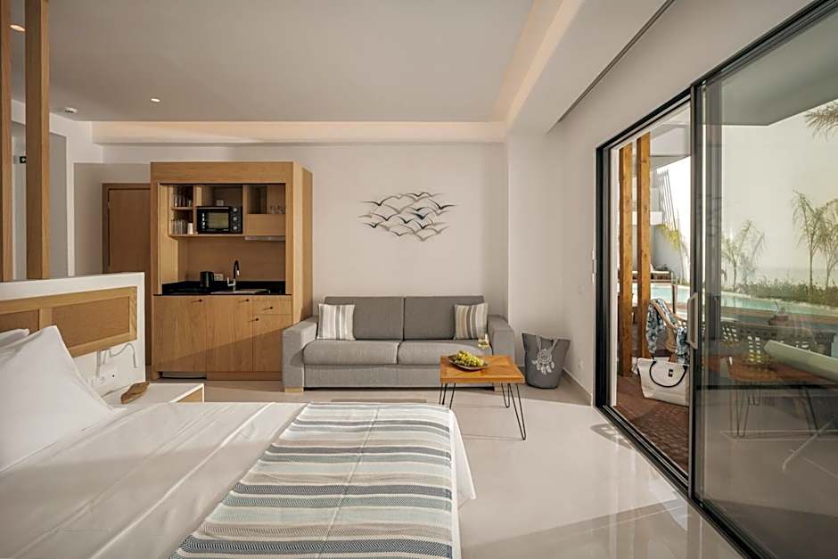 Get ready for sun-soaked adventures and evening strolls along the beach at Galazio Beach Resort! With the turquoise waters lapping against the shore, it's hard to resist diving right in. The hotel’s stunning infinity pool is exclusively for adults, providing the perfect place to unwind with a refreshing cocktail, while the separate kids' pool ensures that the little ones have their own splash zone. Imagine days spent lounging poolside under the warm Greek sun, with only the sounds of laughter and waves filling the air!