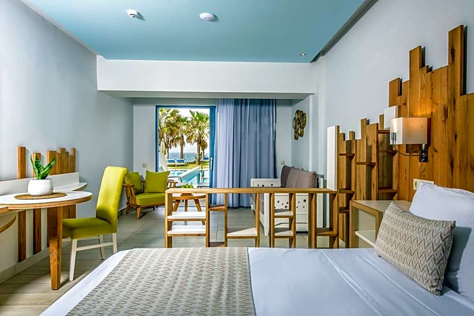 On Limín Khersonísou’s sun-kissed shore, this five-star escape offers a private beach area for mornings by the sea and golden sunsets to close each day. Family-friendly perks abound, including a free water park, indoor and outdoor pools, a Kids’ club, and a kid-friendly buffet, while live music and performances bring a cheerful vibe on select evenings. Dining is easy with on-site options and sun-kissed terraces that encourage relaxed meals with sea views.