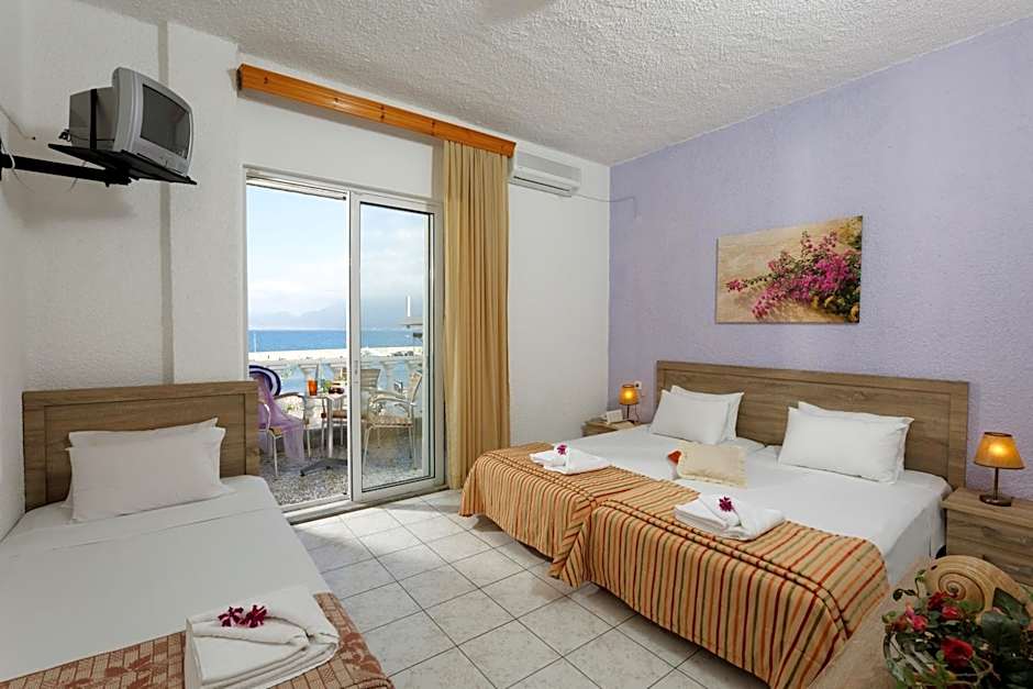 Only a few yards across the beach, this room enjoys side views of the Cretan Sea from its furnished balcony. It is spacious and offers a TV, fridge and coffee maker. Free toiletries and a hairdryer are provided. Please note that this room type cannot accommodate an extra bed.