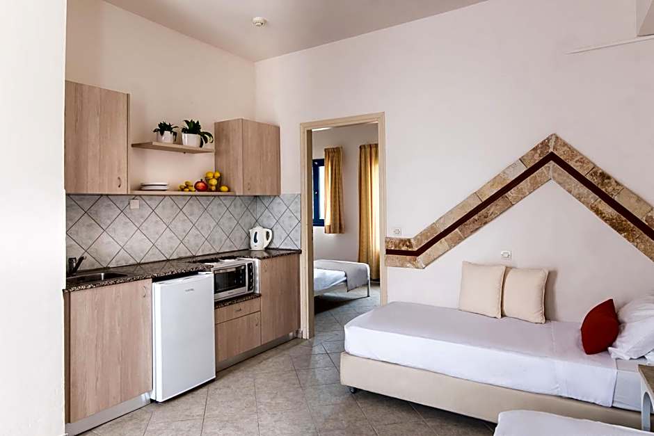 Traveling with family or a group of friends? There’s no need to worry about where everyone will sleep! The hotel offers a variety of well-equipped accommodations, including spacious Family Apartments and cozy Standard Studios. Each space promises a comfortable night’s sleep and is designed for optimum relaxation after a day of adventure. With something to suit everyone, you can create cherished memories together while sharing stories about your day's escapades, or whip up a delicious meal in your kitchenette before heading out to explore the culinary delights of Mália.