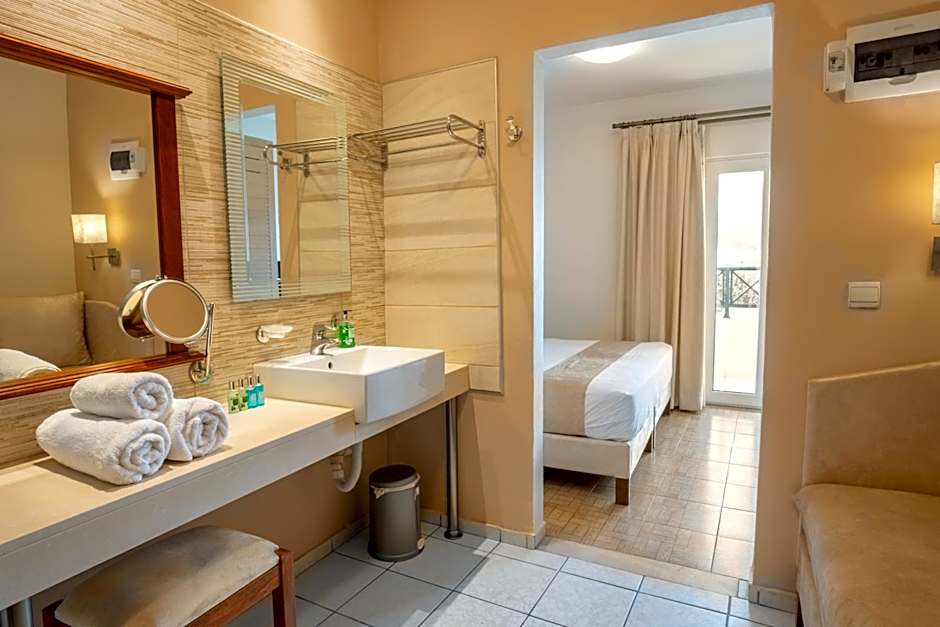 Address: Emmanouil Tsagkaraki. With 109 reviews, this property offers a friendly, well-equipped stay, including a restaurant, outdoor swimming pool, a bar, free private parking, and free WiFi. Spa, sauna, and massage are available for an extra charge, and convenient touches include air conditioning, a terrace, a 24-hour front desk, soundproof rooms, beach umbrellas and chairs, and non-smoking rooms.