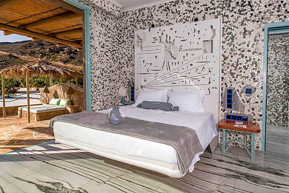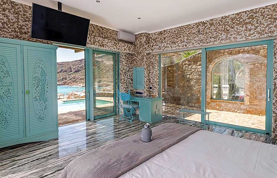 Calilo is a beachfront five-star escape in Manganari, Greece, where sun-drenched luxury meets island charm. The property features a private beach area, an outdoor pool, and spa/wellness packages, with snorkeling included at no extra charge. Private parking and Wi-Fi are complimentary, and pets are welcome on request, with no extra charges. Dining options include an on-site restaurant, a bar, and a beachfront terrace, while private entrances and soundproof rooms, plus free air conditioning and a fitness center, ensure comfort; streaming service provides cozy movie nights.