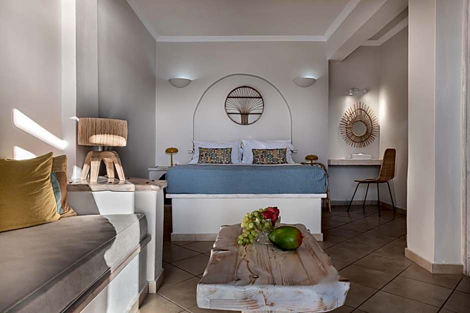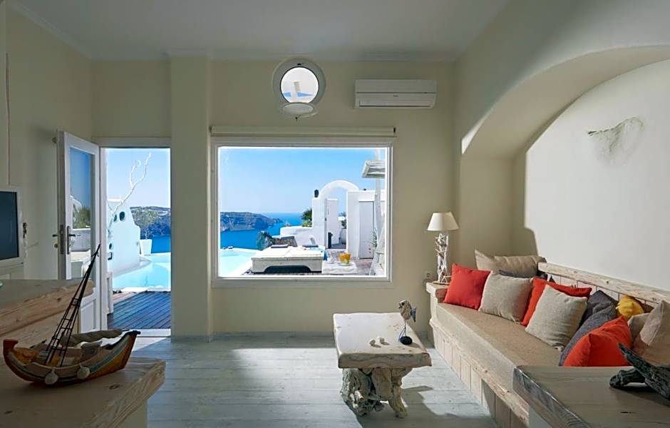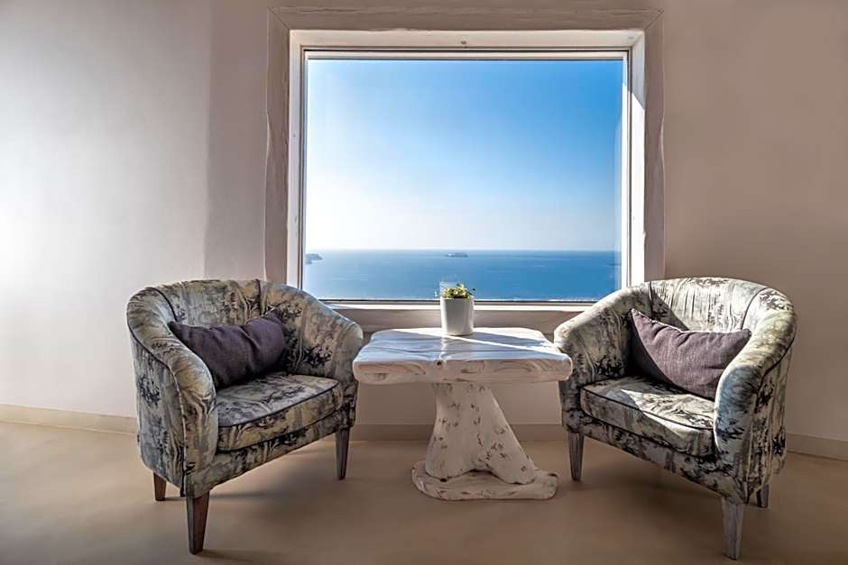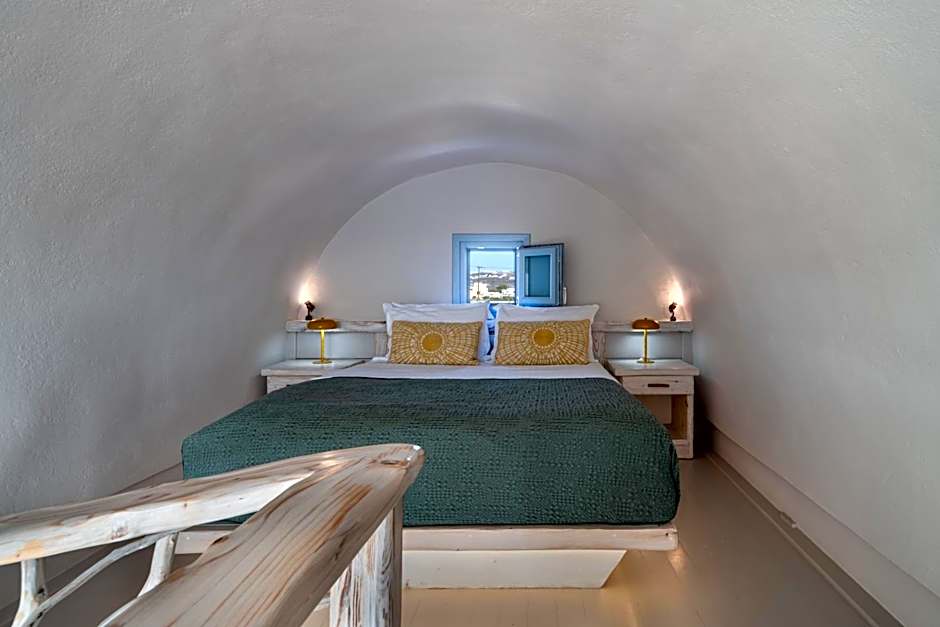Divided in 2 levels, this air-conditioned suite enjoys Aegean Sea and Caldera views from its balcony. It is fitted with handmade furnishings and a driftwood staircase in white tones. It offers: - free WiFi - flat-screen, satellite TV - mini-bar - slippers and hairdryer - a private balcony with outdoor furniture.