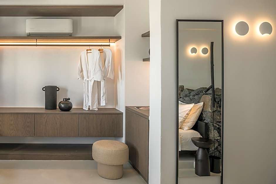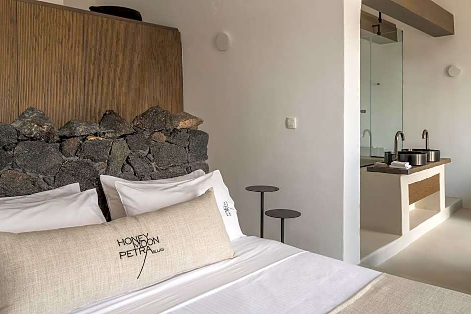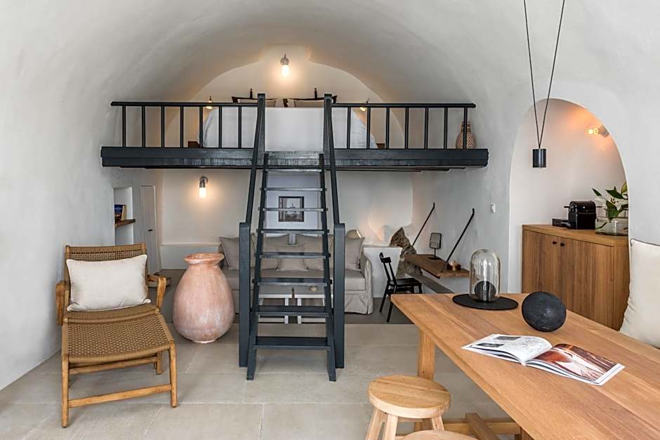 Offering Caldera views, these uniquely decorated suites consist of one double bedroom, spacious living area with a sofa, a uniquely designed bathroom and indoor hot tub. Daily maid service is available.