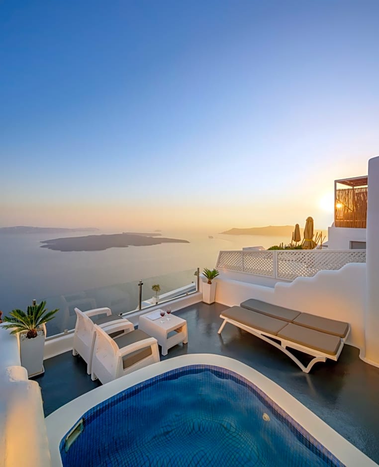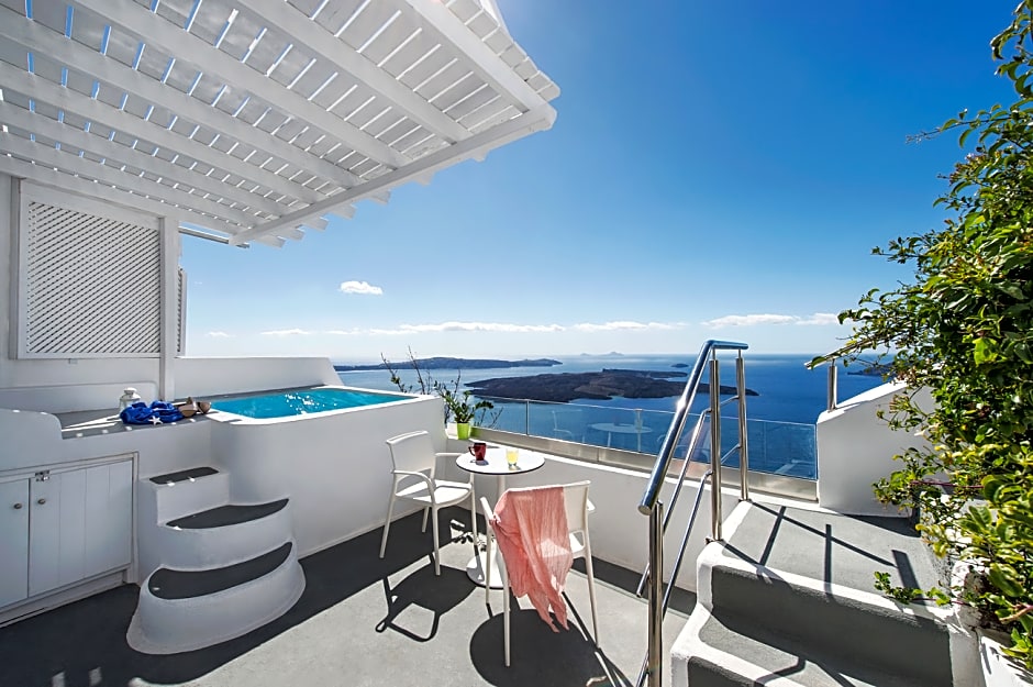 Featuring a private, heated plunge pool and a spa bath, this elegantly decorated and air-conditioned suite opens to a furnished balcony with Aegean Sea and volcano views. It offers: -2 extra large beds in an open-plan area -a seating area with flat-screen, satellite TV -a mini-bar -a private bathroom with free toiletries and bathrobes -free WiFi.