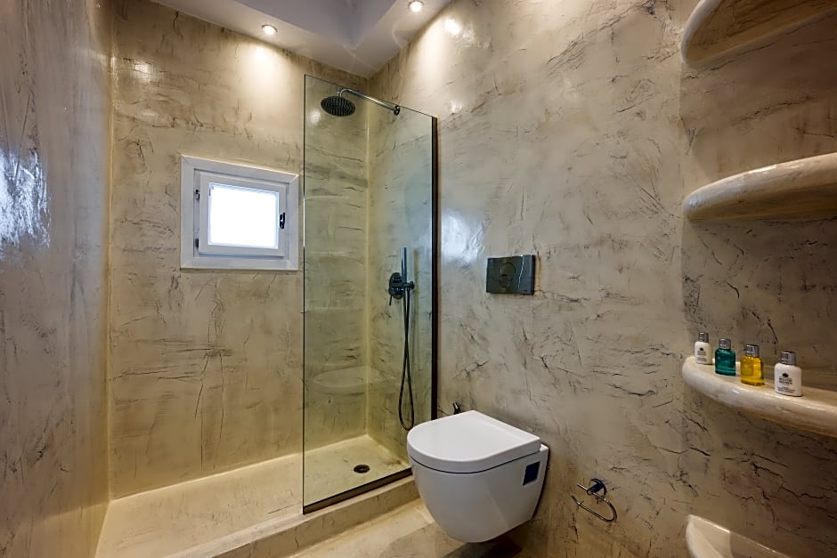 Superior Cave with Private Pool & Sea View is 581 square feet and includes a queen-size bed 150-154 width.
