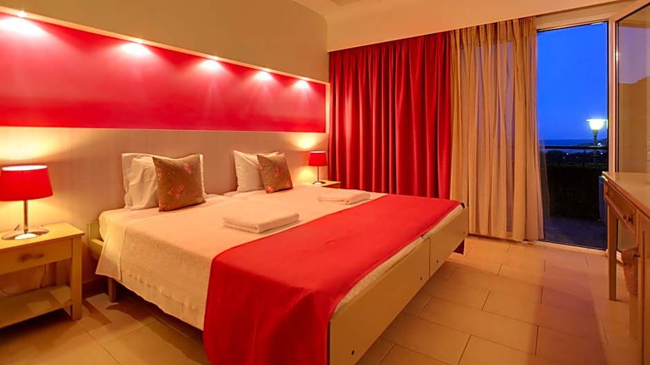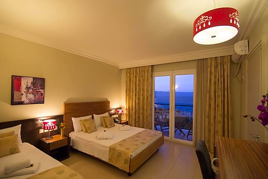 Twin room with view of the Aegean Sea and the Asian Minor shores. It has modern decor, a mini-bar, satellite TV with music channels and hairdryer.