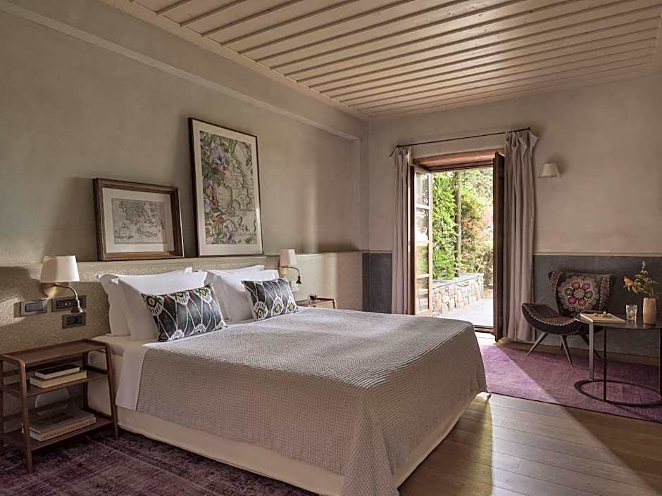This double room features a cable TV. Ideal for a romantic escape, these adorable guest rooms are elegant and welcoming, including a desk and lounge chair. All display special features or characteristics, such as the preserved portion of an ancient wall in Room 22, an old fireplace which has been restored and now is the dominant decorative feature of Room 38 – or the traditional wooden dome in Room 24. Sleeps two, in one double bed or two twin beds. Private bathroom with walk-in shower. Size ranges from 17 to 30 m2 (182 - 323 ft2). Images may not fully represent the room features booked.