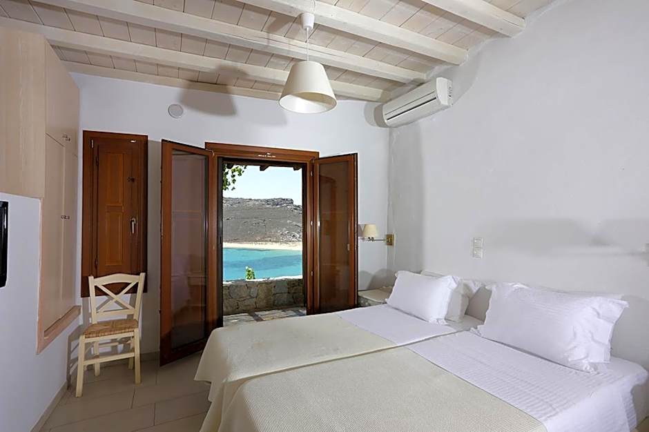 Step outside and the beach is the name of the game: beach umbrellas, chairs, loungers, and a sun deck line the shore, while sea views add a postcard-ready backdrop to every moment. The setting is a breezy coastal base about 2,9mi from Mykonos town, offering a convenient hub for island explorations without sacrificing that peaceful beach vibe.