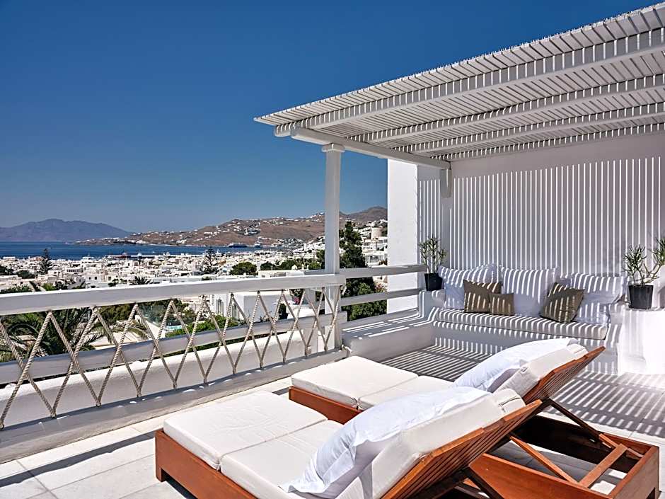 Belvedere Mykonos - Hilltop Rooms & Suites - The Leading Hotels of the World is a five-star escape in Mykonos, Greece, a mere 0,3mi from the city center. Nestled in the School Of Fine Arts District, this hilltop retreat blends refined luxury with island charm. Highlights include a private pool and an outdoor swimming pool, plus terraces and balconies with sweeping Aegean views.