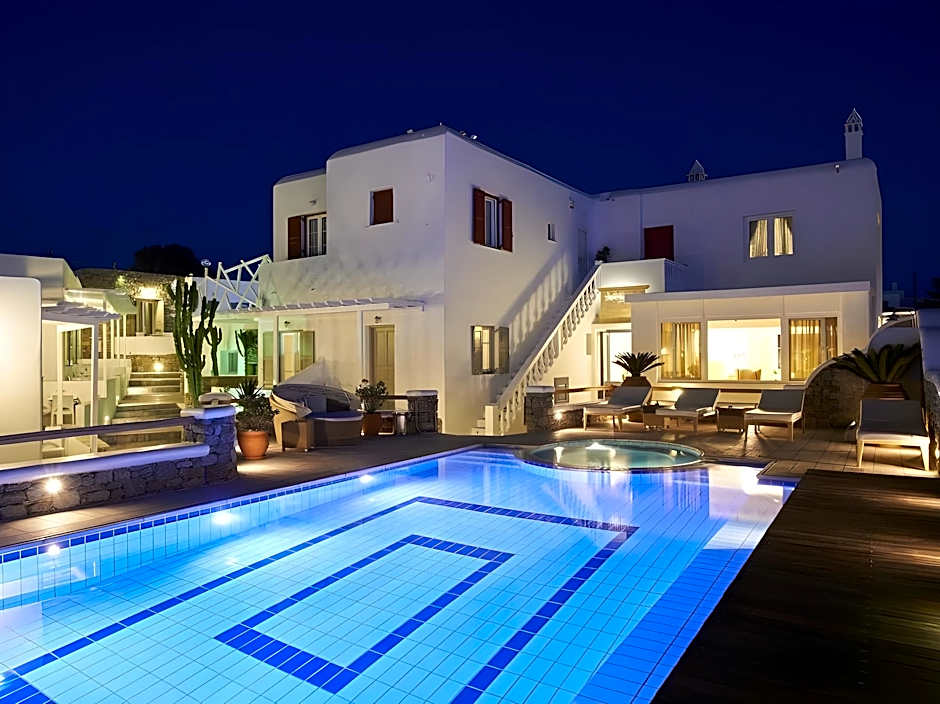 The entertainment doesn’t have to stop after dinner! Be sure to gather around the enticing outdoor swimming pool for a nightcap with fellow travelers. Swim under the stars, refresh your spirits in the tranquil waters, or lounge on a sunbed with a good book in hand. There's something truly magical about winding down by the pool while the Mykonos nightlife beckons with its lively energy nearby.