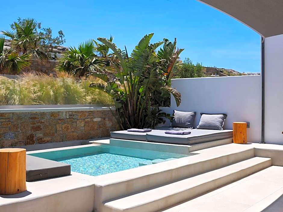 Once you’ve settled in at Le Palme Mykonos, take advantage of the fabulous outdoor pool that invites you to unwind under the sun. Spend your lazy afternoons lounging by the water, sipping on a refreshing cocktail from the bar as you soak in the idyllic surroundings. For the little adventurers in your family, the kids' pool and club are perfect playgrounds for frolicking and creating unforgettable memories! You’ll easily find a blissful spot to relax, whether that's by the shimmering pool or on the beautiful terrace filled with lush garden views.