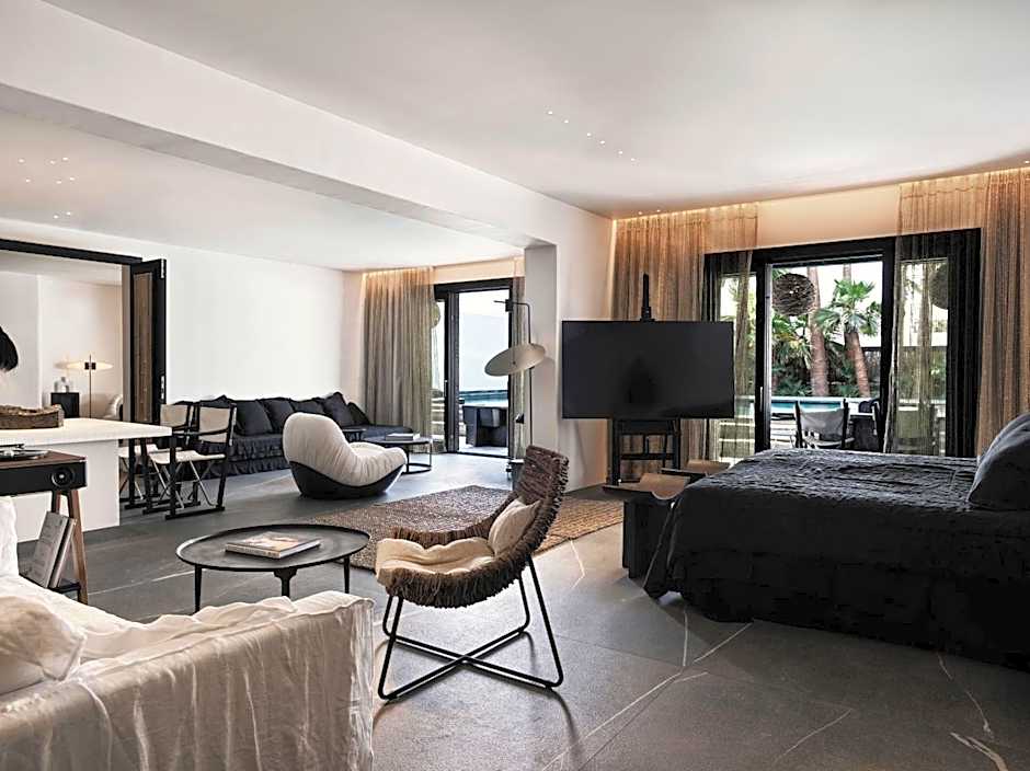 Myconian O, a Member of Design Hotels, is a 5-star retreat perched on Ornos Beach in Mykonos, Greece, located about 1.5マイル from the city center. Address: Ornos Beach. Minimum price starts from $782 per night, and the property has 142 reviews.