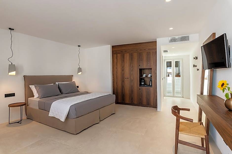 Nestled in the sunlit Platys Gialos area of Mykonos, this property oozes island charm with breezy coastal vibes. A short stroll to the shore means beach umbrellas and loungers are always ready for sun and sea, while garden scenery offers a tranquil backdrop. The location keeps Mykonos town within easy reach—about 2,1mi away—so days can swing between beach bliss and town exploring.