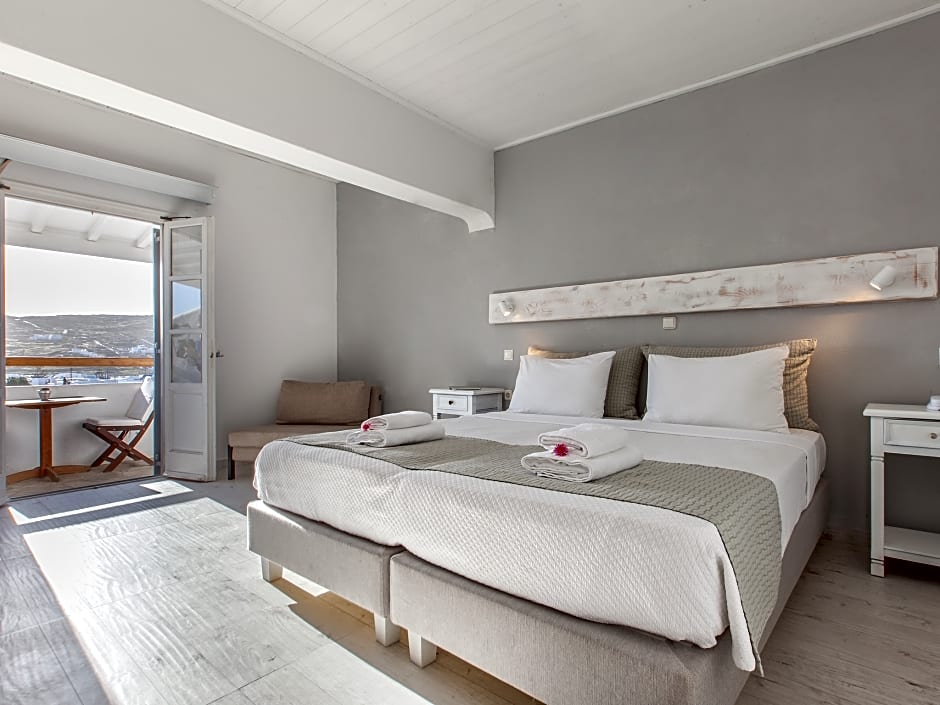 Fitted with marble floor, this tastefully decorated and air-conditioned room opens to a furnished terrace with Aegean Sea views. It features a mini fridge and a TV. Free WiFi is provided.