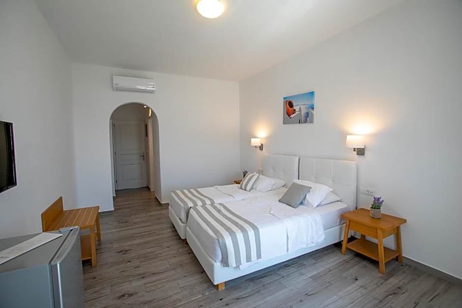 The George Hotel Mykonos offers a variety of rooms including Family rooms accommodating up to 5 adults and 2 children, Triple rooms for 3 adults, and Quadruple rooms for 4 adults and 1 child. These rooms feature a mix of Queen size and Twin beds, with some offering sea views. Smoking is not allowed in any of these rooms.