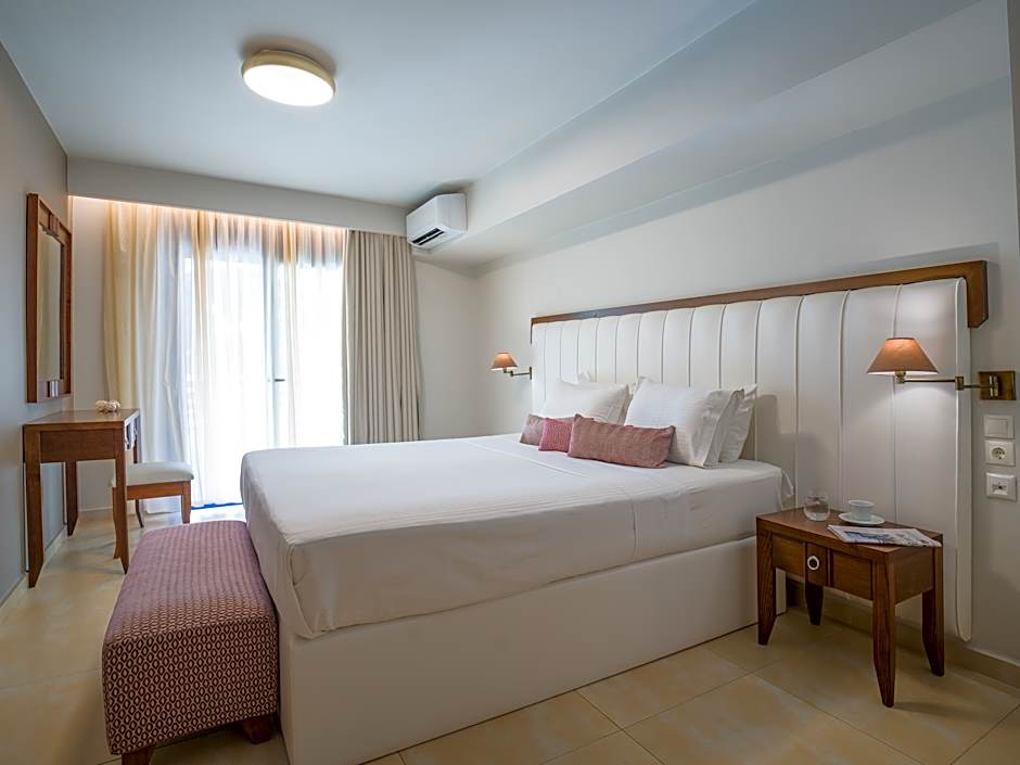 Includes a Plasma TV, telephone, mini bar, bathrobes and a furnished terrace with views to the Cycladic landscape.
