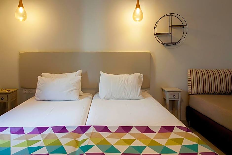 At Agni Suites, the fun never stops! Dive into the outdoor swimming pool or take a short stroll to the private beach area where beach umbrellas and lounge chairs await. Feeling adventurous? You can try your hand at snorkeling or horse riding, or simply unwind with a massage on the sun deck while the kids enjoy the playground. And those with a penchant for culinary adventures can whip up delicious meals in your fully equipped kitchenette. With free Wi-Fi, soundproof rooms, and all the comforts of home, you'll never want to leave!