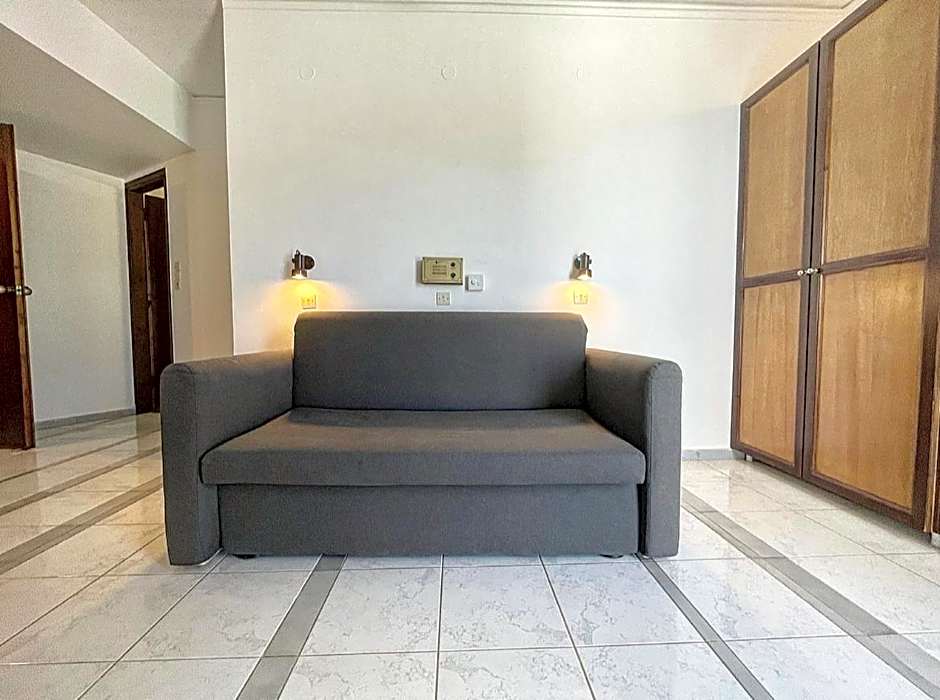 This centrally air-conditioned room features 1 bedroom and 1 living room area with either two singles beds or a sofa bed and a bathroom with a shower .The kitchenette has a sink, a refrigerator and a kettle but no cooking facilities. The balcony offers side (partial) sea view .Please note that this room type can not accommodate an extra bed.