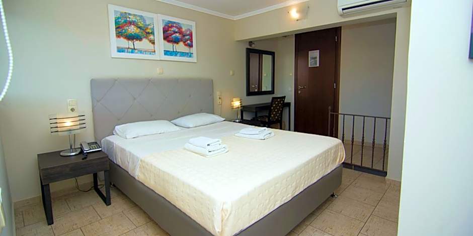 The penthouse double, is an ideal choice for couples who love panoramic views and want some more privacy. It is the only room located on the hotel's terrace with an exterior wooden deck and breathtaking views to the sea, the Venetian Castle, the nearby olive groves and the the town of Parga. It is tastefully designed to comfortably accommodate up to 2 people. This room is well-equipped offering facilities such as a king Double Bed, Air Conditioning, Flat LCD TV, free-wifi, hairdryer, small fridge, safety deposit box and en-suite toilet-room with shower and free toiletries. It also features a spacious balcony of a wooden deck with sunbeds and outdoor furniture.