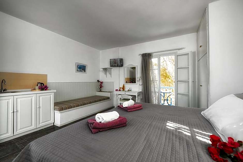 The double room comes with a private bathroom/Shower and balcony opening to the courtyard or looking onto the pedestrian street. It features a refrigerator, safety box, and free WiFi. A welcome tray with electric kettle and complimentary coffee/tea is offered. The Aegean Village Hotel provides breakfast buffet, including Tea/Coffee/Juice/Milk, local eggs, local cheese, bacon, little cheese/spinach pies, croissant, seasonal fruits, fresh bread, cereal etc.