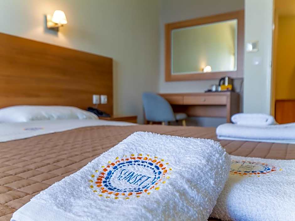 Though some premium services like shuttle rides, tour guidance, and water sports come with an extra charge, guests find the value well worth it for the comfortable, soundproof rooms and thoughtful touches like free toiletries and beach umbrellas. With a 24-hour front desk, non-smoking rooms, and an array of outdoor lounging options, Sunset Hotel invites you to embrace Greece's beautiful coastal charm in style and ease.