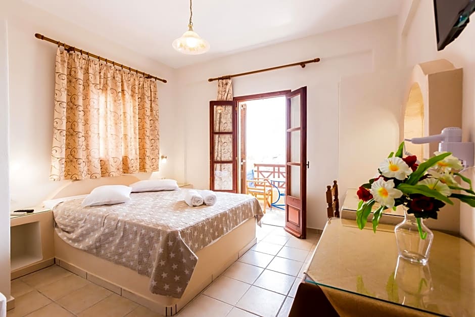 Mandilaria Studios is a cheerful 2-star guest house in Perivolos, Greece, located about 0,6mi from the village center. Address: Perivolos. This breezy retreat promises a simple, comfortable base for beach days and sunset strolls in a sun-soaked corner of the island.