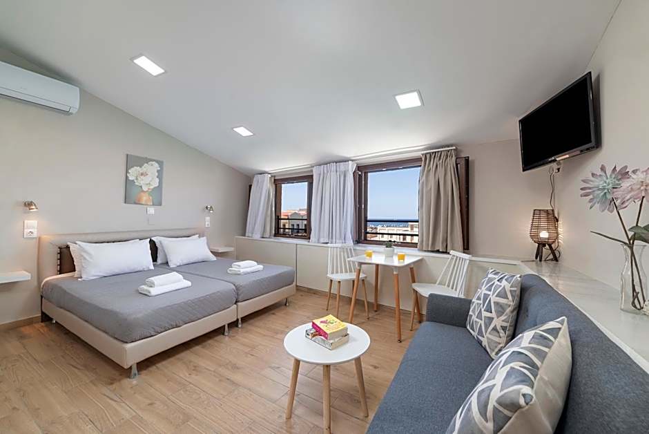 Features a balcony with views of the Rethymno Marina and Lighthouse. Facilities include air conditioning, TV and fridge.