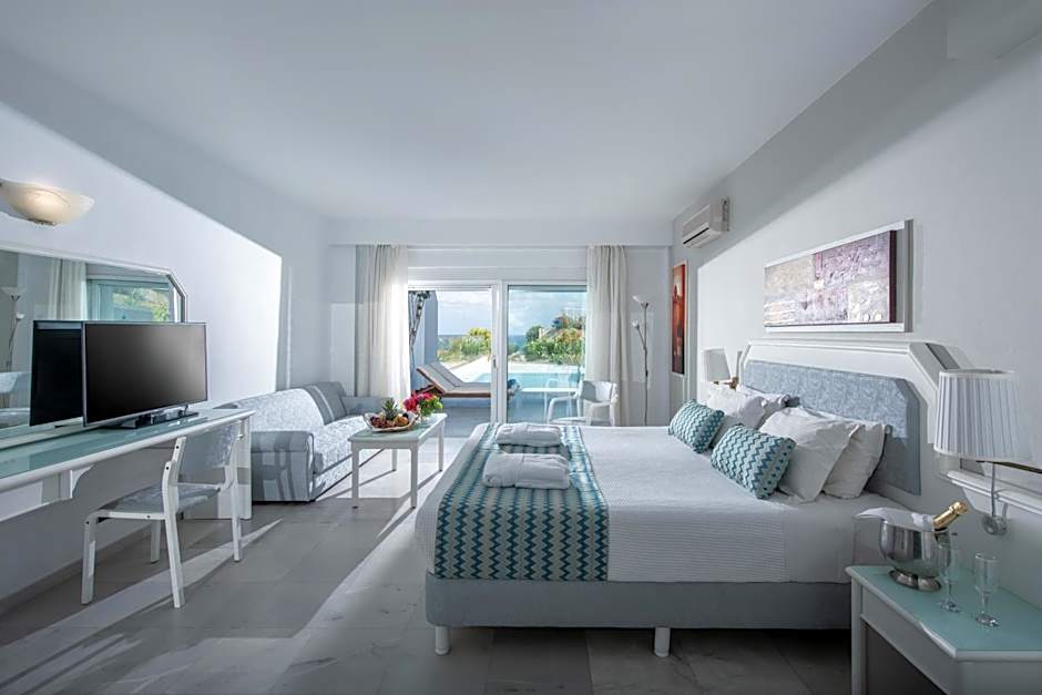 This suite features a pool with a view and a spa bath. This air-conditioned suite is consisted of of a flat-screen TV with satellite channels, a private bathroom as well as a terrace with sea views. The unit has 3 beds.