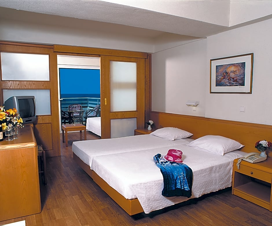 Nestled along the stunning shores of Ródos, Sirene Beach Hotel offers an unforgettable Greek getaway just 1,2mi from the vibrant city center. With its prime beachfront location, this 4-star haven invites travelers to relax and soak up the sun by the outdoor swimming pool or lounge comfortably on beach chairs and umbrellas available for a small extra fee. The hotel’s inviting terraces and balconies maximize the scenic views, making every moment, whether sipping a drink at the bar or enjoying a live music performance, feel truly special.