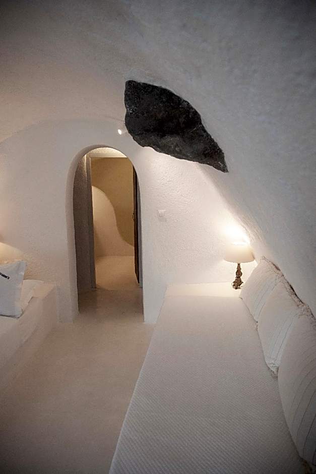 Cave Suite with Caldera View is 431 square feet and includes a queen-size bed 150-154 width plus living room, balcony, satellite tv , hairdryer, tea and coffee making facilities , safe, bathrobes, and slippers.