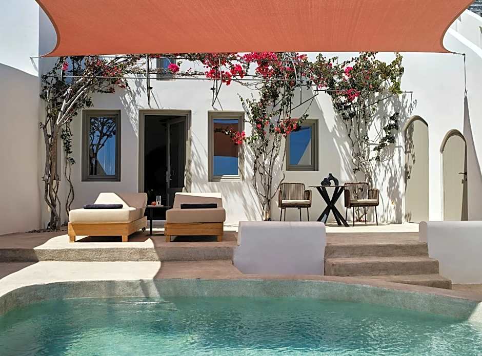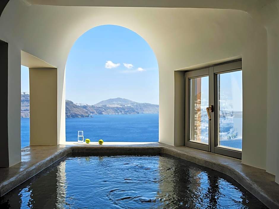The White House features a private infinity pool with Caldera views, an outdoor hot tub and waterfall. You will find a double bedroom, an airy living area with sea views and a bathroom. The house is set on a 200 m2 terrace where you can enjoy a private dining.