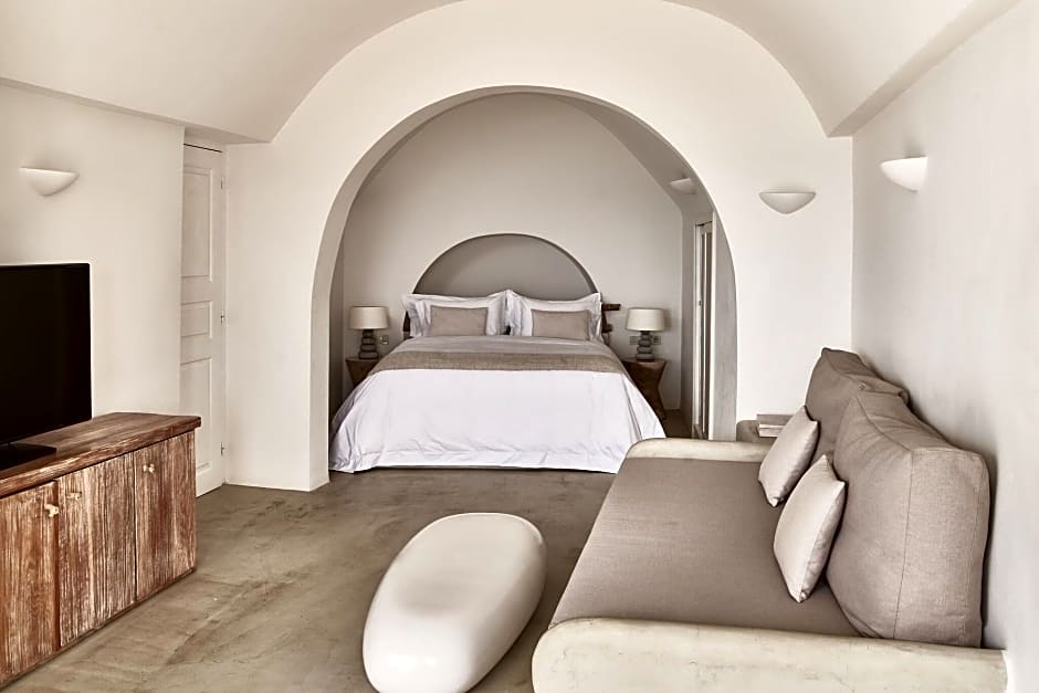 Featuring an outdoor hot tub and views to the Caldera and the Aegean Sea from its terrace, this elegantly decorated, air-conditioned suite comes with an open-plan living room. Fitted with a spa bath, it offers a mini-bar and a flat-screen TV with satellite and cable. Free Wi-Fi is available.