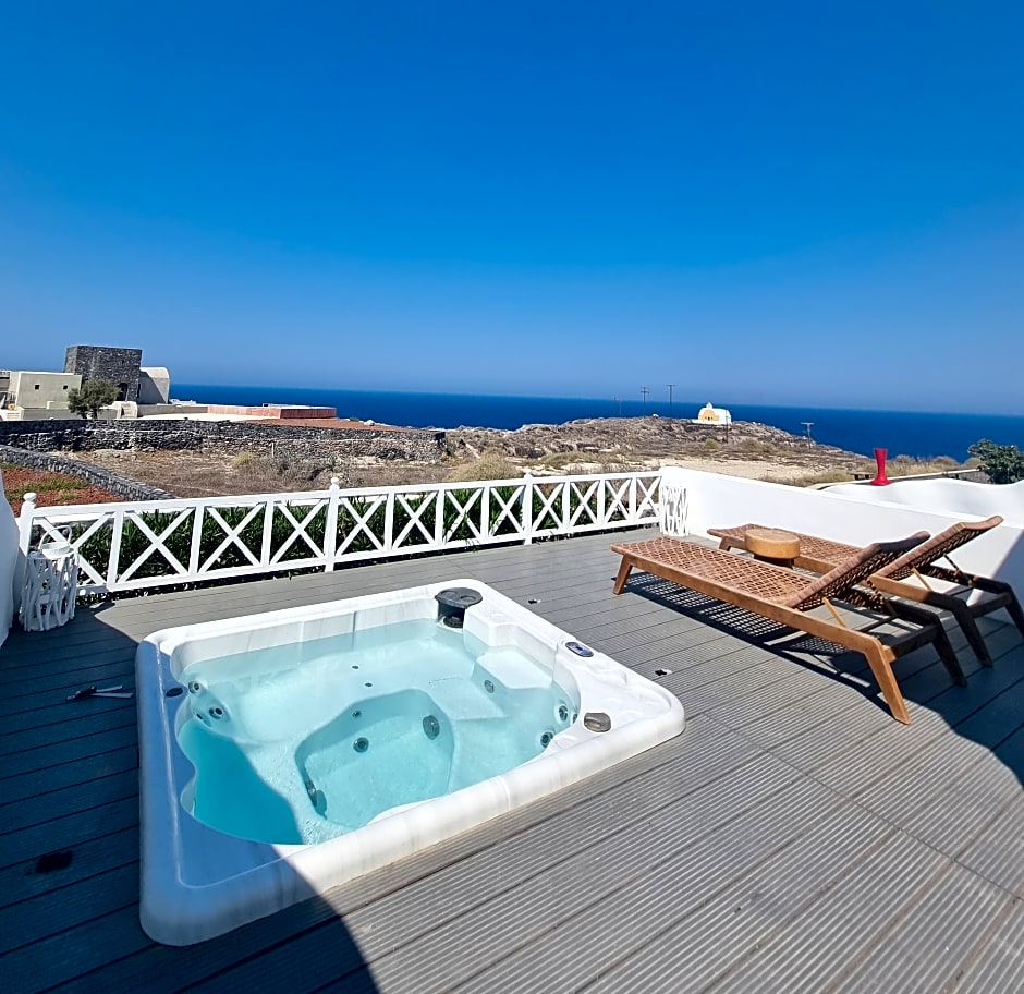 This split 3-level villa with one of the bedroom located on loft level accessible with wooden staircase features an outdoor, private pool and a private hot tub for 6. Offers sun terrace overlooking the Aegean Sea and the sunset. All remaining bedrooms are located on the lower level. There are also a shared outdoor fireplace and a private outdoor dining area covered by a pergola. The villa includes a private garden and provides access to two shared pools. It includes a fully equipped kitchen with coffee maker, living room with a flat-screen TV, and eco-friendly mattresses. Free WiFi is available. Upon arrival, guests are offered a welcome basket including a bottle of wine, orange juice, water and traditional Greek products. Extra beds and baby cots are provided on request.