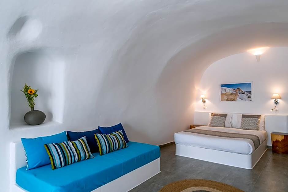 Cave Standard Studio with Caldera & Sea View is 172 square feet and includes a king-size bed 150-183 width.