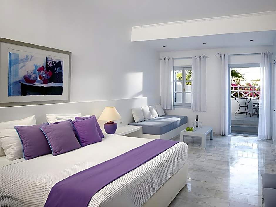 After a day of basking on Kamari Beach or exploring the charming sights of Santorini, guests can unwind at the hotel’s delightful outdoor pool, perfect for a refreshing dip in the warm Mediterranean sun. The seasonal pool features a shallow end, making it suitable for families with children or anyone looking to relax gently after a day full of adventure. Surrounded by sun loungers and beach umbrellas, it’s an idyllic spot to soak up the tranquility while enjoying picturesque views of the Aegean Sea.